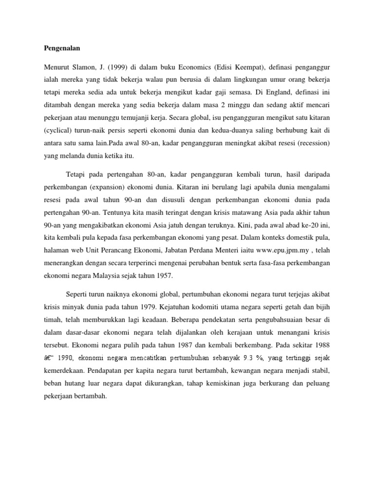 Berdasarkan gambarajah 1 bermula tahun 1992 kadar pengangguran di. Pengangguran ditakrifkan sebagai kelompok individu yang bersedia untuk bekerja pada kadar. Masalah Pengangguran Di Malaysia Kerana Memilih Pekerjaan.